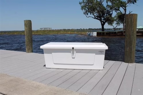 All of our fiberglass C&M dock boxes are constructed with a minimum of 3/16″ heavy fiberglass thickness, all stainless steel (corrosion-proof) hardware and ultra-violet resistant white gel-coat for long lasting durability and sound investment. All C&M boxes carry a 2 year warranty against manufacture defects.