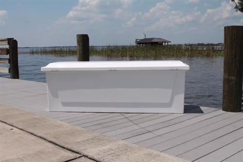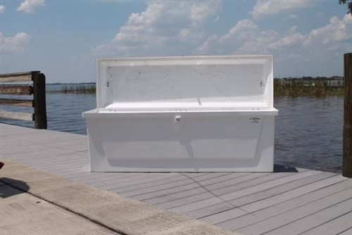 All of our fiberglass C&M dock boxes are constructed with a minimum of 3/16″ heavy fiberglass thickness, all stainless steel (corrosion-proof) hardware and ultra-violet resistant white gel-coat for long lasting durability and sound investment. C&M dock boxes come with a 2 year warranty against manufacture defects.